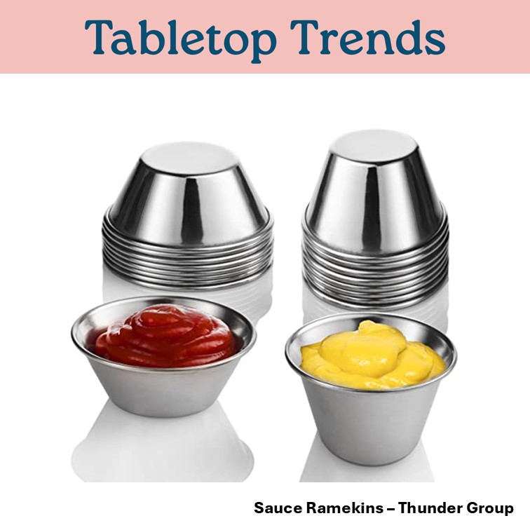 - Thunder Group: we offer a range of ramekins in a variety of ounce sizes, in both stainless steel and melamine, in a selection of eye catching colours ideal for serving lots of different foods.