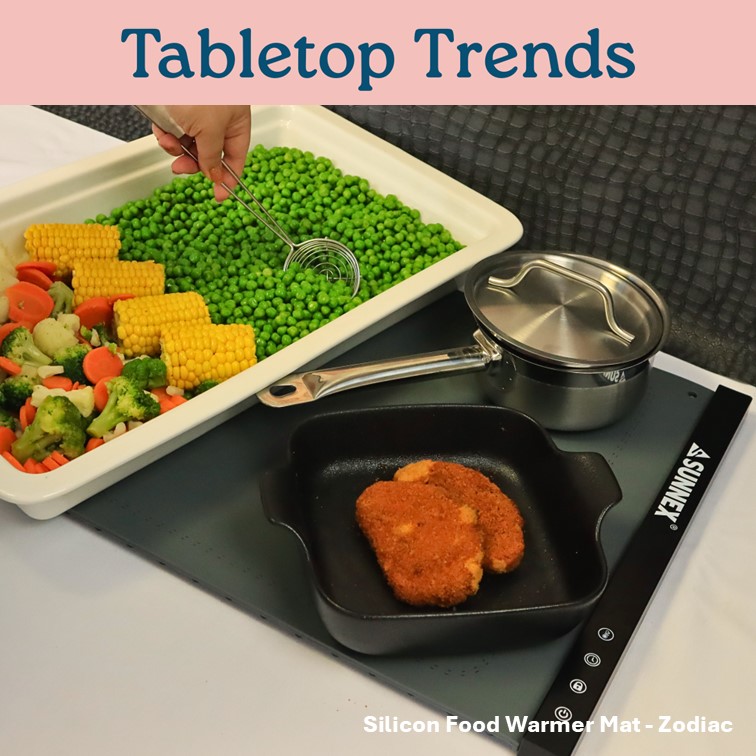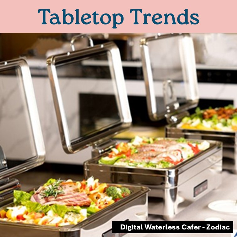 - Zodiac: the Waterless Digital Chafer offers precise temperature control, energy efficiency and enhanced safety by eliminating the need for open flames or water baths. The Silicone Food Warmer Mat is a flexible, space-saving heating option that’s easy to use and store, ideal for small venues and portable buffets.