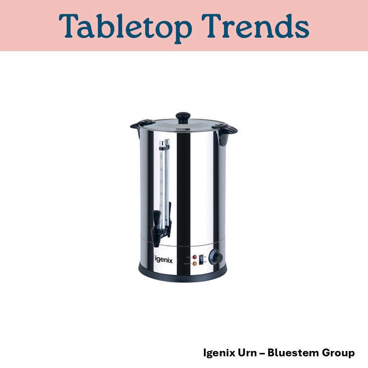 - Bluestem: Bluestem catering urns are available in a range of sizes from 8 litres up to 30 litres, making them ideal for producing large amounts of hot drinks at once.